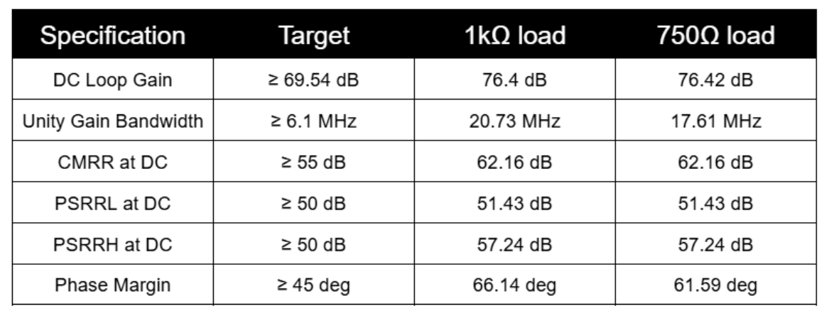 Thus, the designed two-stage OpAmp is able to meet all the required specifications with an overall Figure of Merit (FoM) of 50.01!